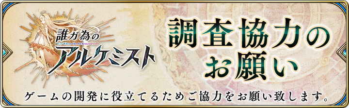 『誰ガ為のアルケミスト』サービス向上のためのアンケート実施について
